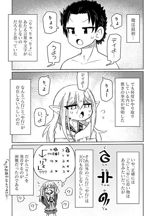 主人公は何も知らない状態ですから、身振り手振りと筆談で少しずつ理解し、それを自分の知識(日本語)に置き換えていきます。