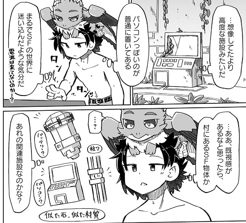 りょうた自身も、この世界では身体能力が大幅にUPされていたり、りょうたの言葉を理解できる謎の生き物(ドラゴン?)がいたり。