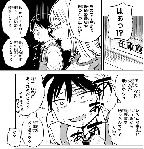 アキは思っていたのと違う職場に混乱しますが、書店は書店、選り好みをできる立場でもないと考えを改め、安住書店で働くことを決意。