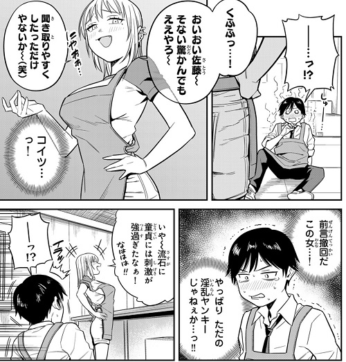 教えてくれる先輩店員の山本ハルはヤンキーっぽい上に、エロに過剰に反応するアキをからかってくる。