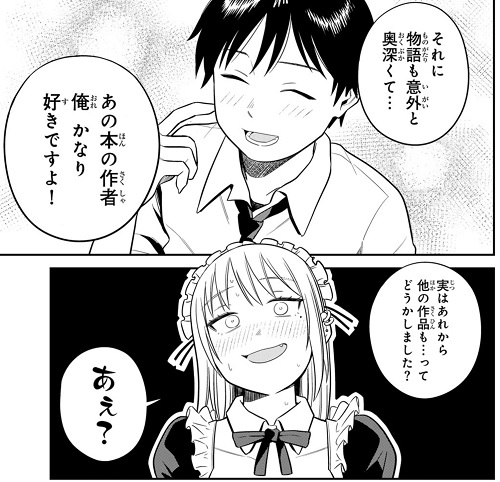 アキはそのことを知らずにハルの作品を読んで、作者が目の前にいると知らずに嬉しそうに感想を語ったりして、ハルはそれを聞いて密かに照れてしまったり(褒めに弱い)